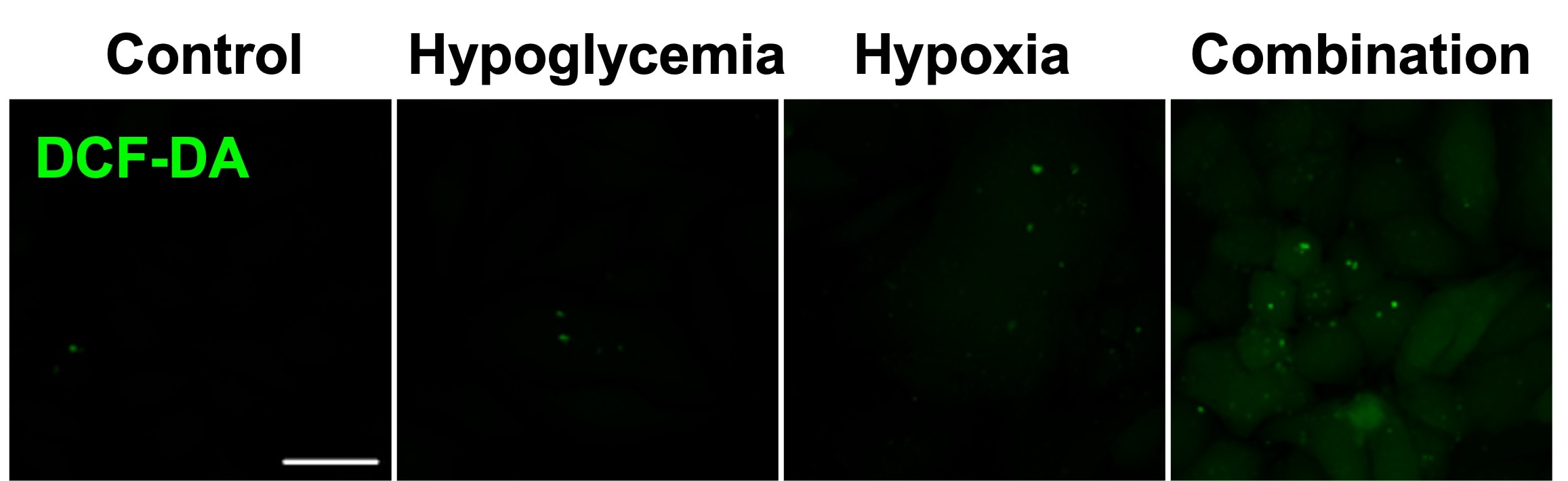 I used H2DCFDA to measure the overproduction of ROS by HepG2 cells under hypoxic and hyperglycemic conditions. Cells were treated with 10 μM of H2DCFDA for 30 min at 37 0C and imaged under a fluorescent microscope.