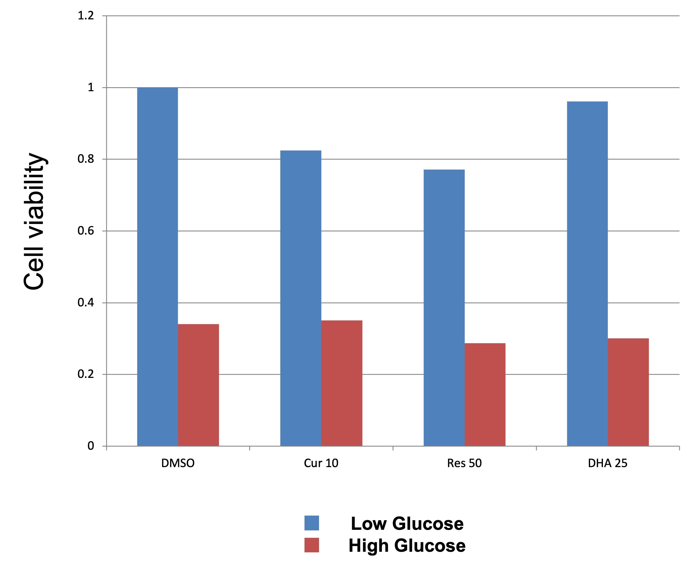 I used MTT to measure cell viability of Retinal pigmented epithelial cell (ARPE) in response to hyperglycemia with/without hypothesized chemoprotective compounds.