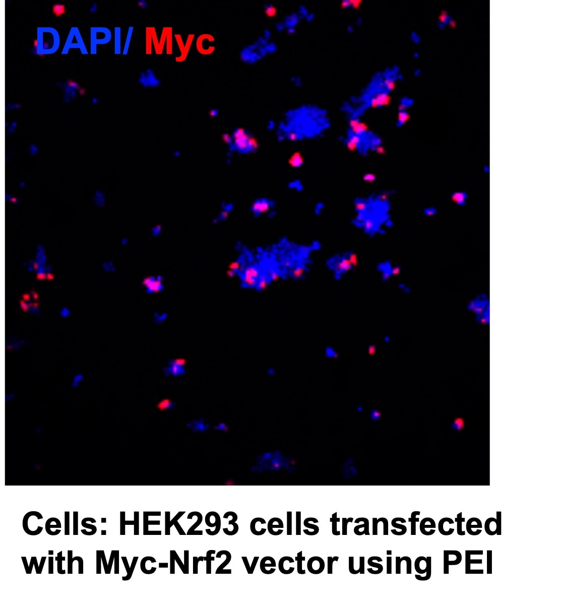 I used PEI as the transfection reagent to achieve overexpression of target proteins in HEK293 cells. The reagent worked really well and resulted in a very high transfection efficiency (~80%).