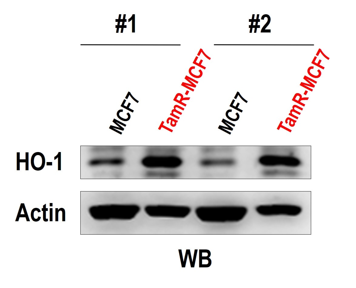 Tamoxifen (1 uM) was used to maintain tamoxifen resistant breast cancer cell line, MCF7 TAMR-1. The line exhibited higher levels of antioxidant enzyme HO-1 compared to parental line.